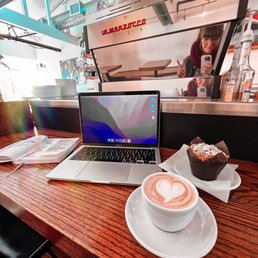 The coffee tastes wonderful, the roaster does a very good job. The service has always been great and the baristas friendly. I like the atmosphere with its tagger look and rap albums on the wall. I wish they would heat the ceramic coffee cups though. I'm a fast drinker yet my coffee never seems to stay hot long enough. That keeps this from being a 5 star rating.
